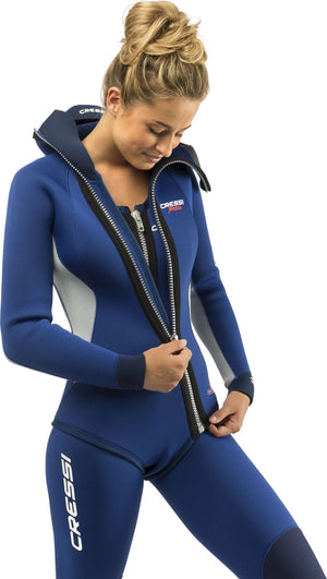 The medas is a classic 5+5 mm suit apt for dives in temperate waters, and also useful in cold waters with use of an inner vest. Renovated pattern, with larger more anatomical panels, in a discrete and elegant combination of black and blue for the male version and black and turquoise for the female version, with contrasting seams and the new logos sporting a more modern look. The pattern of this model is derived from the most sophisticated cressi dive models and thus is very anatomical, with preformed legs and arms for an always-natural position and without any seams in the armpit area. The purchase price is contained, the pattern, the production, and the attention to details make it a great choice and it is one of the most widely used globally