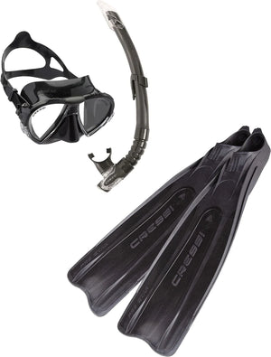 Cressi Pro Star Fins are a great all-rounder, lightweight choice of full foot-pocket style fin for scuba diving, snorkelling and freediving. The combination of the blade beneath the footpocket and the angle of the blade provides the ultimate in kicking efficiency, requiring less energy to load the blade. Cressi Pro Star Fin can comfortably be worn with or without neoprene socks. An excellent combination of resistance, power, comfort and aesthetics.